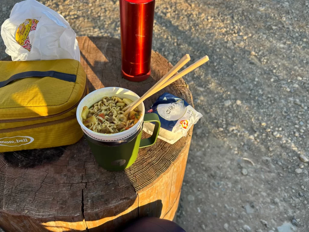 携帯おかん器50ml+ラーメン300ml+食後のカモミールティ150mlで使い切り。